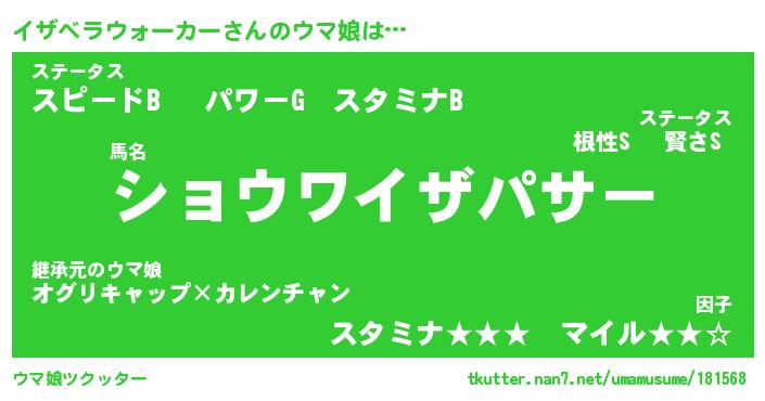 | ヒーロー風カッコイイあだ名 | 『スーパーイザベラウォーカー』 |