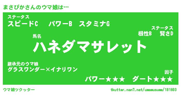 | 欧米人風あだ名 | 『マイケルまさぴか』『ウサインまさぴか』 |