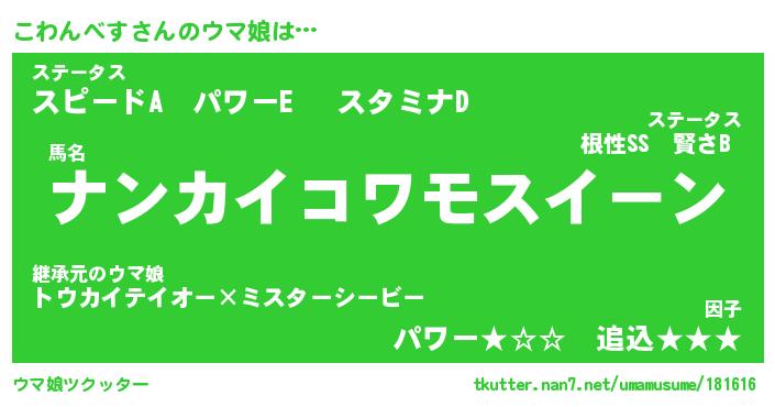 | 男性向けラノベタイトル風あだ名 | 『こわんべすの憂鬱』 |