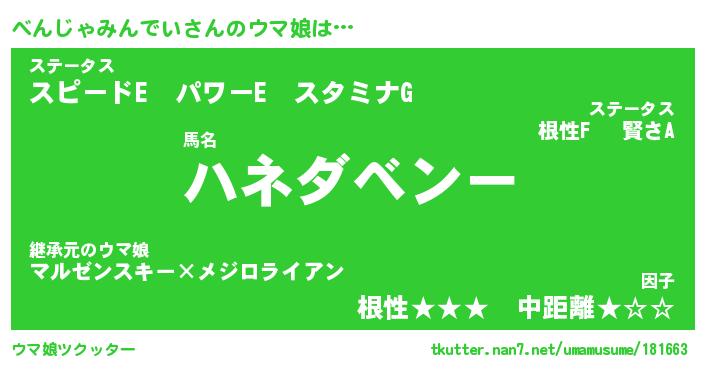 | ポケモン風あだ名 | 『ベンチュウ』『ベンジダネ』 |