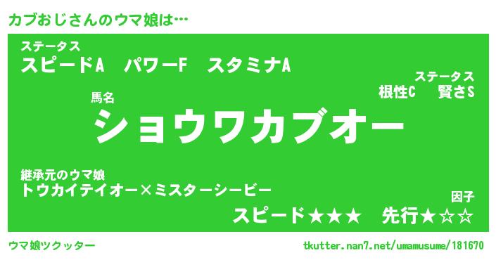 | 意味不明あだ名 | 『ペロリンカブおじ』『永久保存カブおじ』 |