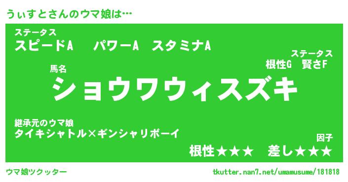 | ポケモン風あだ名 | 『ウィチュウ』『ウィスダネ』 |