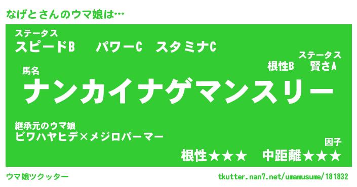 | 意味不明あだ名 | 『ペロリンなげと』『なげとフォーエバー』 |