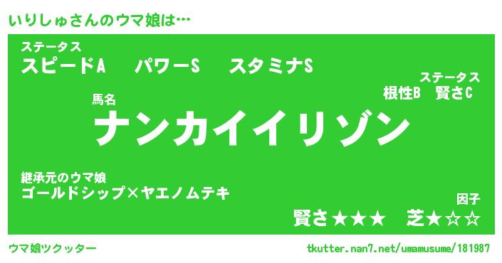 | 意味不明あだ名 | 『ペロリンいりしゅ』『永久保存いりしゅ』 |