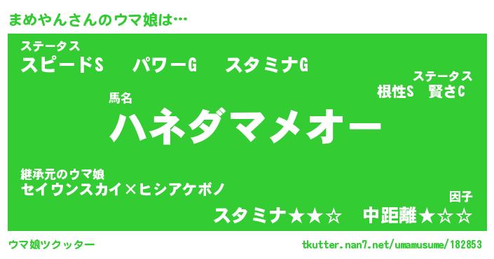 | 意味不明あだ名 | 『ペロリンまめやん』『永久保存まめやん』 |