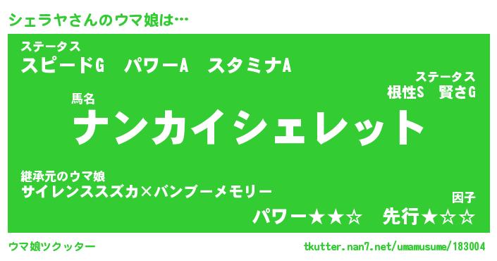 | 意味不明あだ名 | 『ペロリンシェラヤ』『永久保存シェラヤ』 |