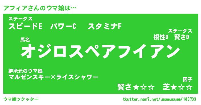 | 意味不明あだ名 | 『ペロリンアフィア』『永久保存アフィア』 |
