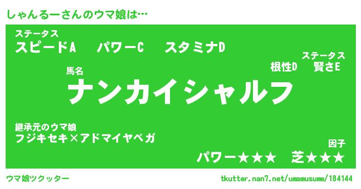 | 男性向けラノベタイトル風あだ名 | 『しゃんるーの憂鬱』 |
