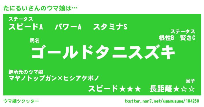 | ポケモン風あだ名 | 『タニチュウ』『タニルダネ』 |