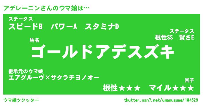 | ヒーロー風カッコイイあだ名 | 『スーパーアデレーニン』『天弓騎士アデ』 |