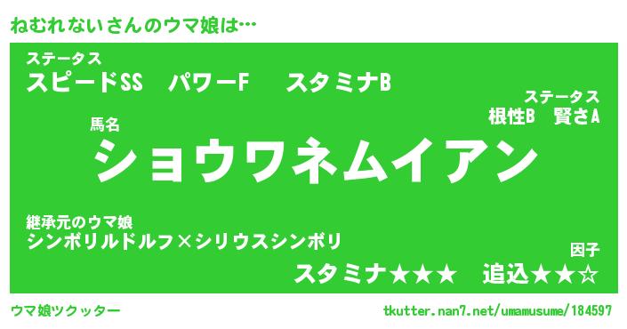 | ファンタジー風あだ名 | 『ネムフェル』『エターナルネムレナイー』 |
