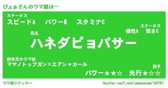 | ポケモン風あだ名 | 『ピョチュウ』『ピョァダネ』 |
