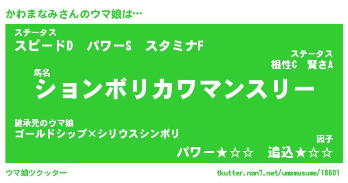 | 男性向けラノベタイトル風あだ名 | 『カワマナミアートオンライン』 |