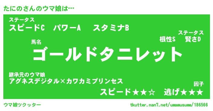 | ポケモン風あだ名 | 『タニチュウ』『タニノダネ』 |