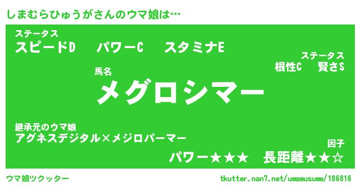| ファンタジー風あだ名 | 『シマフェル』『ファントムシマス』 |