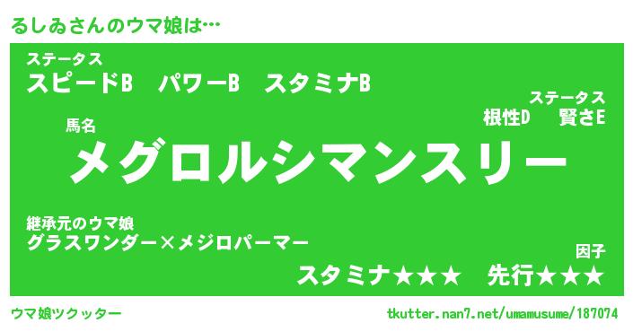 | ヘコむあだ名 | 『るしもー』『豆乳』『るし太郎』 |