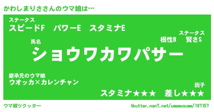 | ポケモン風あだ名 | 『カワチュウ』『カワシダネ』 |