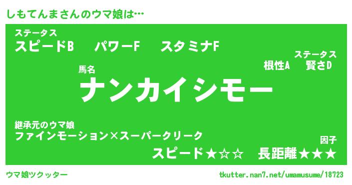 | 男性向けラノベタイトル風あだ名 | 『しもてんまの憂鬱』 |