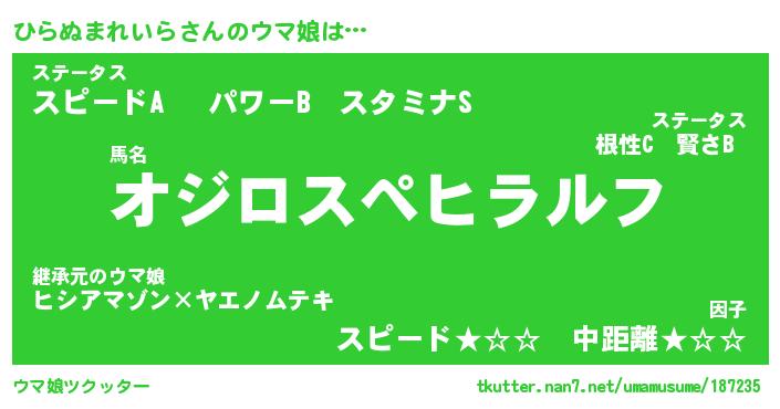| ヒーロー風カッコイイあだ名 | 『スーパーヒラヌマレイラ』 |