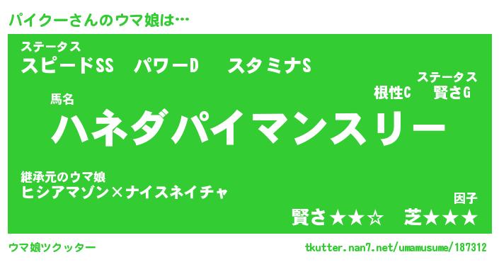 | 自動車の名前っぽいあだ名 | 『パイティマ』『パクア』『デミパ』 |