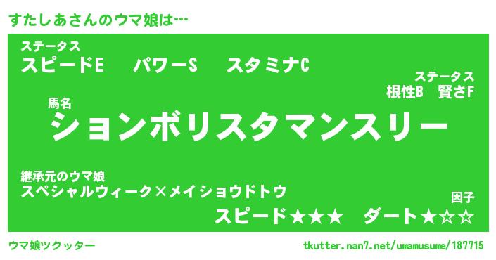 | 欧米人風あだ名 | 『マイケルすたしあ』『ウサインすたしあ』 |