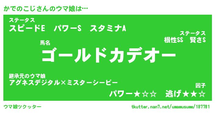 | 伝説のあだ名 | 『封印されしスナイパーかでのこじ』 |