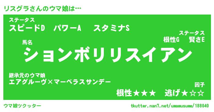 | 欧米人風あだ名 | 『マイケルリスグラ』『ウサインリスグラ』 |