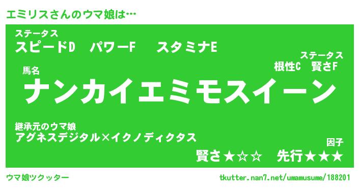 | 意味不明あだ名 | 『ペロリンエミリス』『永久保存エミリス』 |