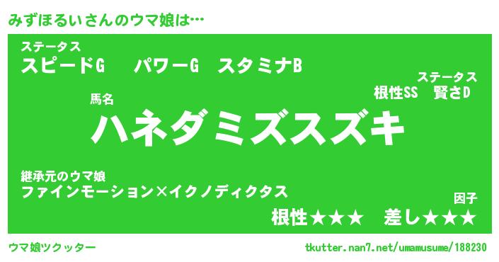 | ポケモン風あだ名 | 『ミズチュウ』『ミズホダネ』 |