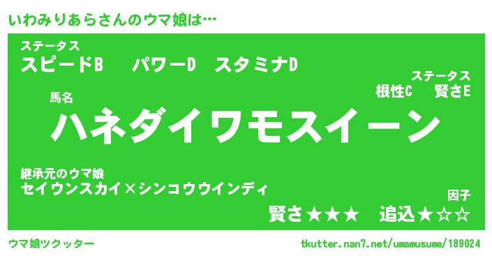 | 自動車の名前っぽいあだ名 | 『イワティマ』『イクア』『デミイ』 |