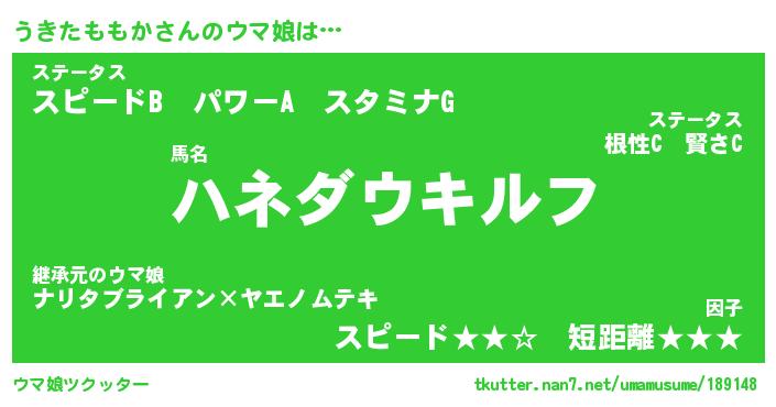 | 自動車の名前っぽいあだ名 | 『ウキティマ』『ウクア』『デミウ』 |