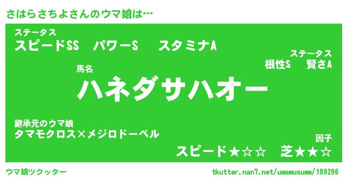 | ヒーロー風カッコイイあだ名 | 『スーパーサハラサチヨ』『黄金騎士サハ』 |