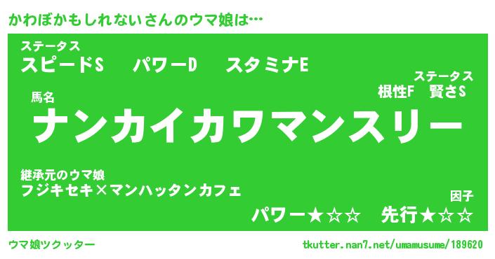 | ヒーロー風カッコイイあだ名 | 『スーパーカワボカモシレナイ』 |