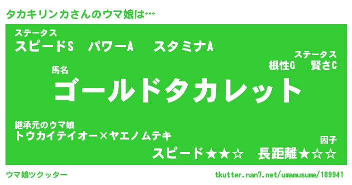 | ヒーロー風カッコイイあだ名 | 『スーパータカキリンカ』『黄金騎士タカ』 |