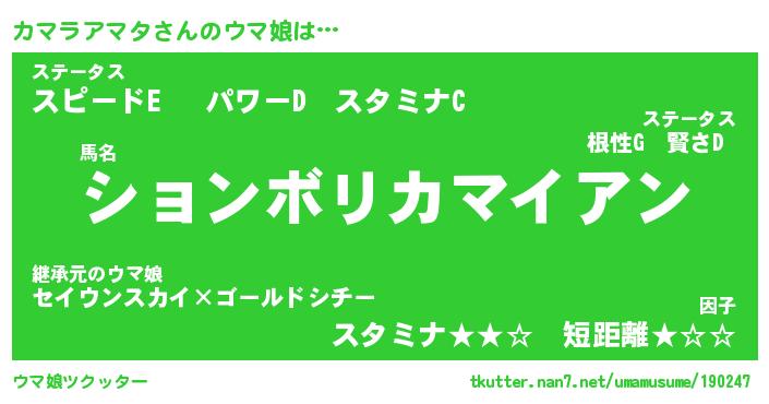 | 2回繰り返すあだ名 | 『カマカマ』『カカママ』『おやおや』 |