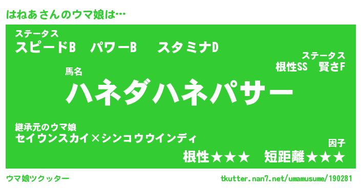| 意味不明あだ名 | 『ペロリンはねあ』『はねあフォーエバー』 |