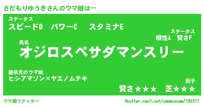 | 肩書あだ名 | 『さだもりゆうき御曹司』 |