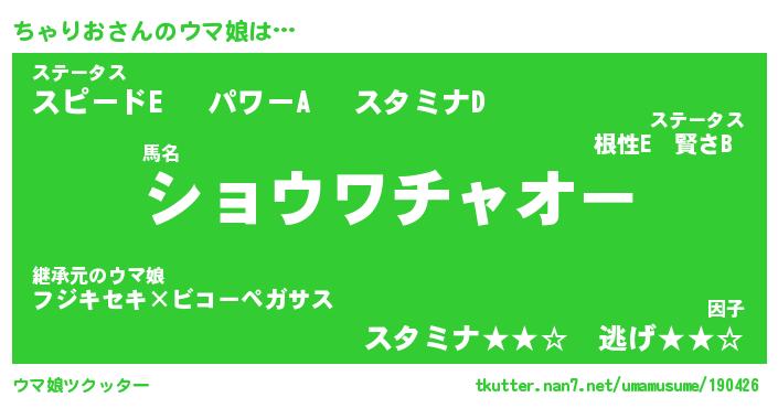 | ファンタジー風あだ名 | 『チャフェル』『エターナルチャリオー』 |