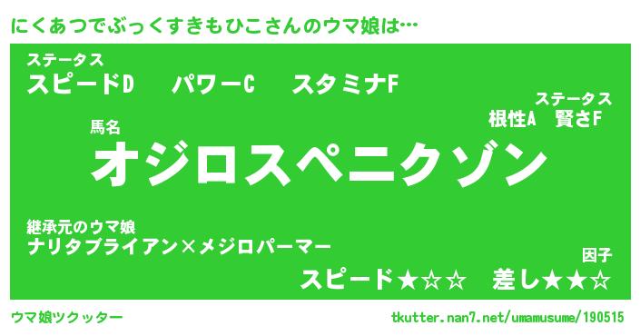 | 男性向けラノベタイトル風あだ名 | 『にくあつでぶっくすきもひこの憂鬱』 |