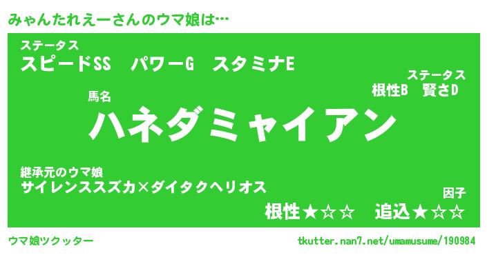 | ファンタジー風あだ名 | 『ミャフェル』『ファントムミャス』 |