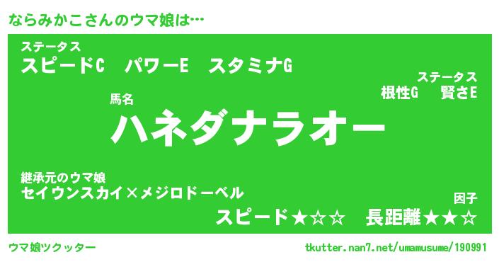 | ヒーロー風カッコイイあだ名 | 『スーパーナラミカコ』『黄金騎士ナラ』 |