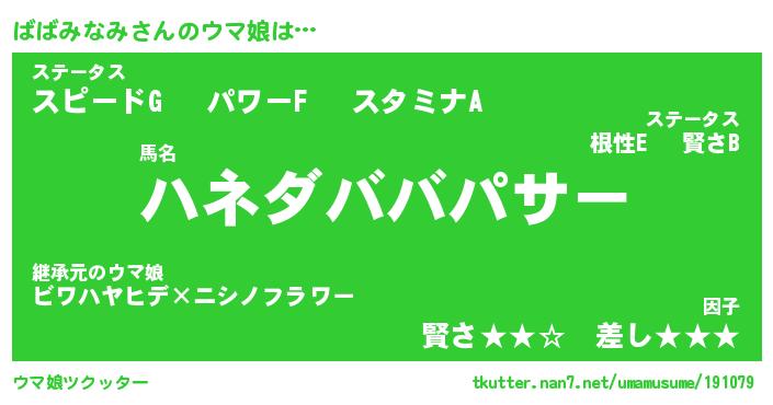 | ポケモン風あだ名 | 『ババチュウ』『ババミダネ』 |