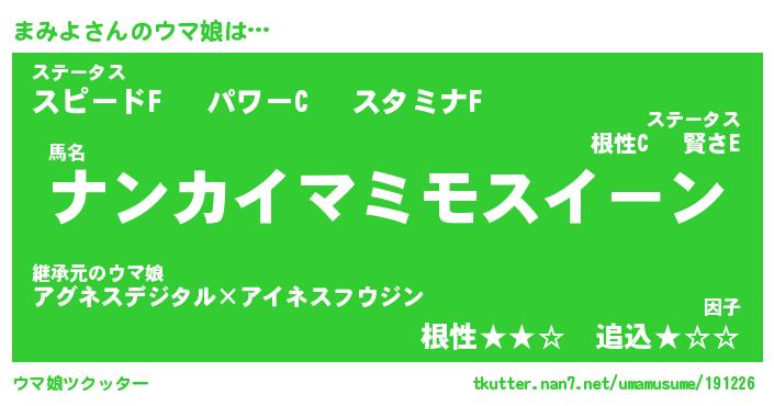 | ポケモン風あだ名 | 『マミチュウ』『マミヨダネ』 |