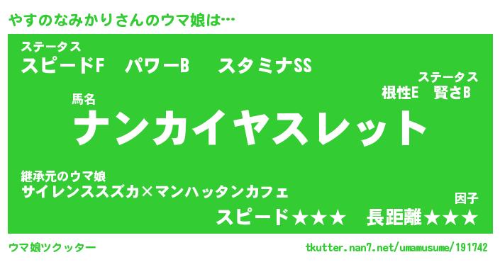 | 男性向けラノベタイトル風あだ名 | 『やすのなみかりの憂鬱』 |