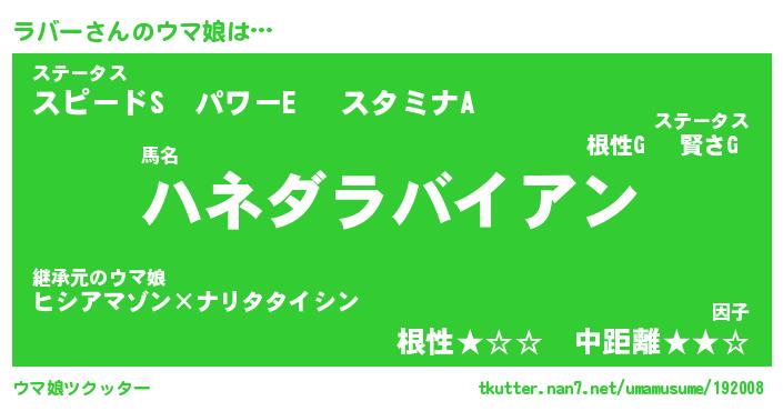 | 2回繰り返すあだ名 | 『ラバラバ』『ララババ』『ぬめぬめ』 |