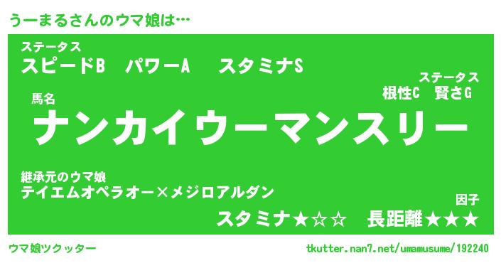 | ファンタジー風あだ名 | 『ウーフェル』『エターナルウーマルー』 |