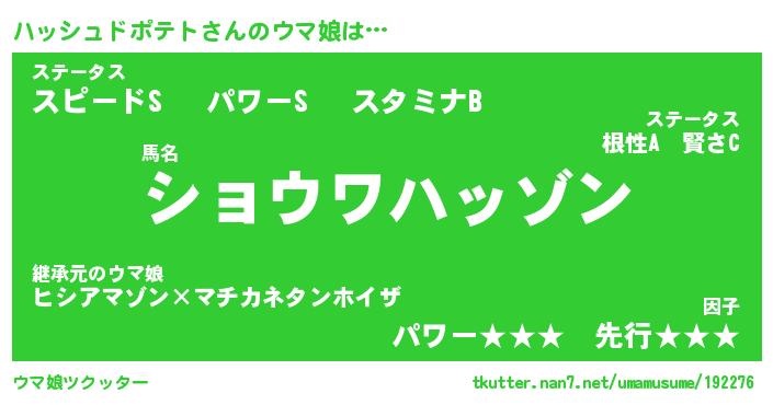 | 自動車の名前っぽいあだ名 | 『プリハッ』『ハクア』『ヴィッハ』 |