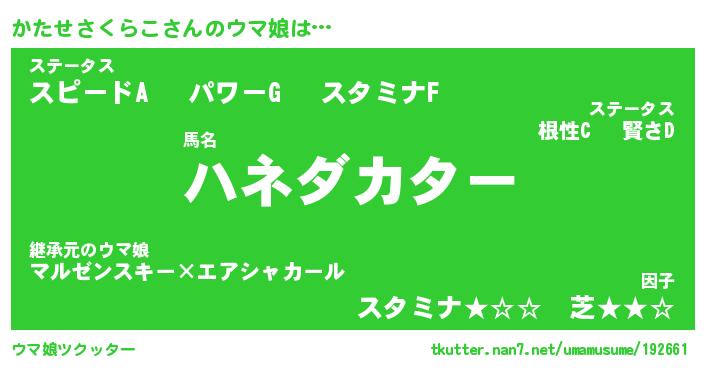 | ヒーロー風カッコイイあだ名 | 『スーパーカタセサクラコ』 |