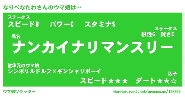 | ヒーロー風カッコイイあだ名 | 『スーパーナリベナタワ』『魔戒騎士ナリ』 |