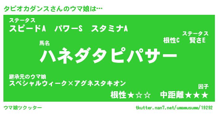 | ポケモン風あだ名 | 『タピチュウ』『タピオダネ』 |
